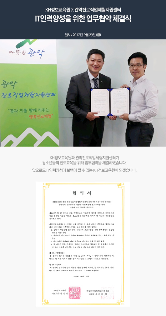 KH정보교육원의 산학협력 소식을 알려드립니다.