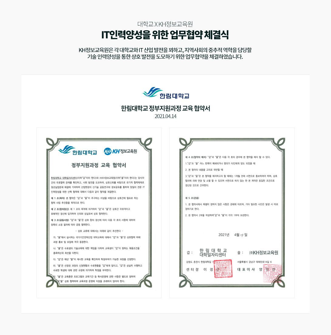 KH정보교육원의 산학협력 소식을 알려드립니다.
