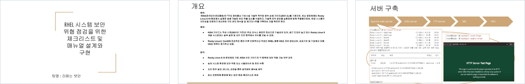- 각 보안 항목별 점검 체크리스트와 설정 가이드 문서를 함께 제공하여 반복적
