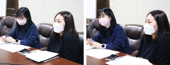 | 신민채 | 일단은 업무지시대로 일을 하고 나중에 면담을 요청해요. ‘이때는 이 방향이 좋지 않았을까요?’ 하면서 소통을 하려고 해요. 말을 하지 않다 보면 쌓이기도 쉽고 상대방의 의사를 알 수 없잖아요. 그래서 소통을 하면서 내 생각도 말하고 상대방의 입장도 생각해보는 것 같아요. 그러다 보면 불만 사항이나 문제도 좋은 방향으로 해결이 되더라고요. |