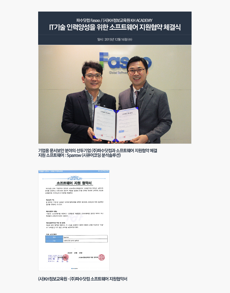 파수닷컴 Fasoo / KH정보교육원 KH ACADEMY IT기술 인력양성을 위한 소프트웨어 지원협약 체결식