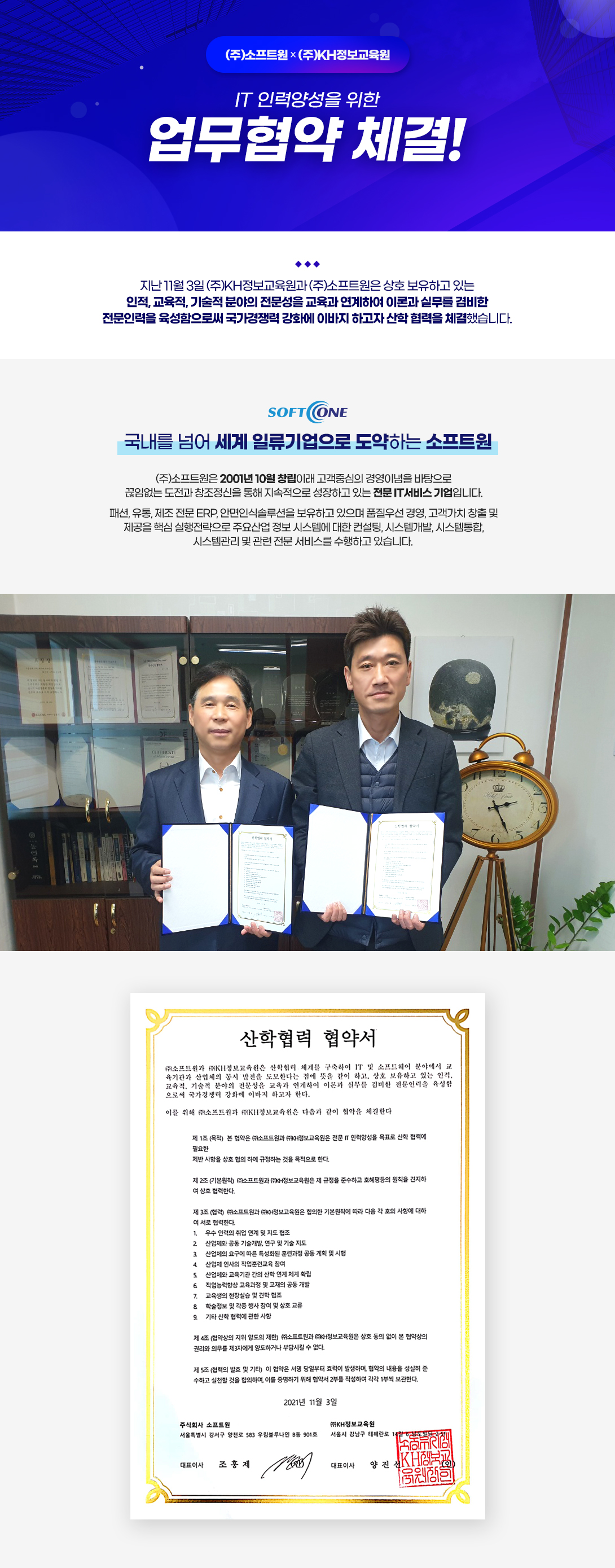 (주)소프트원/KH정보교육원 업무협약 체결
