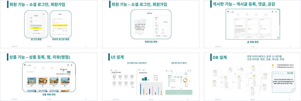 김** : 프로젝트 - 프로젝트 이슈 관리, 형상관리 - 여행 관련 추가 기능 아이디어 제시 (여행경비 계산기, 국내 인기 여행지 투표) UI - 글 상세 페이지 - 투표 관련 페이지 (선택화면, 결과화면) - 여행 경비 계산기 페이지 기능 개발 - 글 상세 정보 조회 / 삭제 - 글 상세 네비게이터 구현 - 글 공감기능 - 해당 글의 댓글 정보 조회 - 대댓글 조회 - 댓글 작성 / 수정 - 댓글 공감기능 - 해당 글 기준 이전 / 다음 글 제목 조회 - 여행지 투표 등록 / 수정 - 여행 경비 계산기 금액 별 비율 계산 및 Doughnut chart 구현